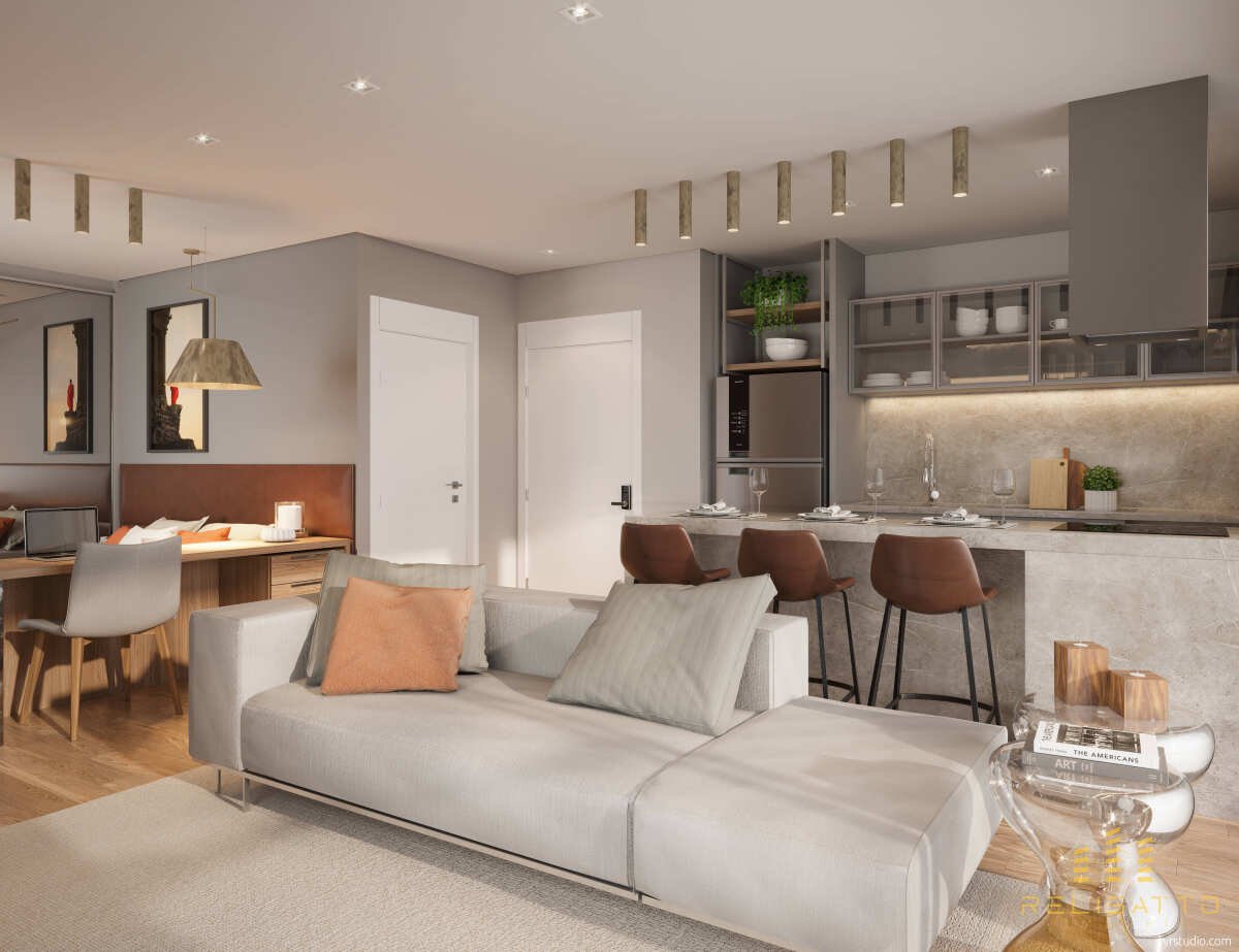 Com unidades residenciais entre 31 m² e 54 m², os apartamentos contam com 1 dormitório, banheiro, opções com varanda gourmet e churrasqueira a carvão. São espaços funcionais e elegantes, ideais para quem busca praticidade e conforto. O projeto ainda inclui opções com piso aquecido nos banheiros, preparação para automação, fechaduras eletrônicas e isolamento acústico nas tubulações.